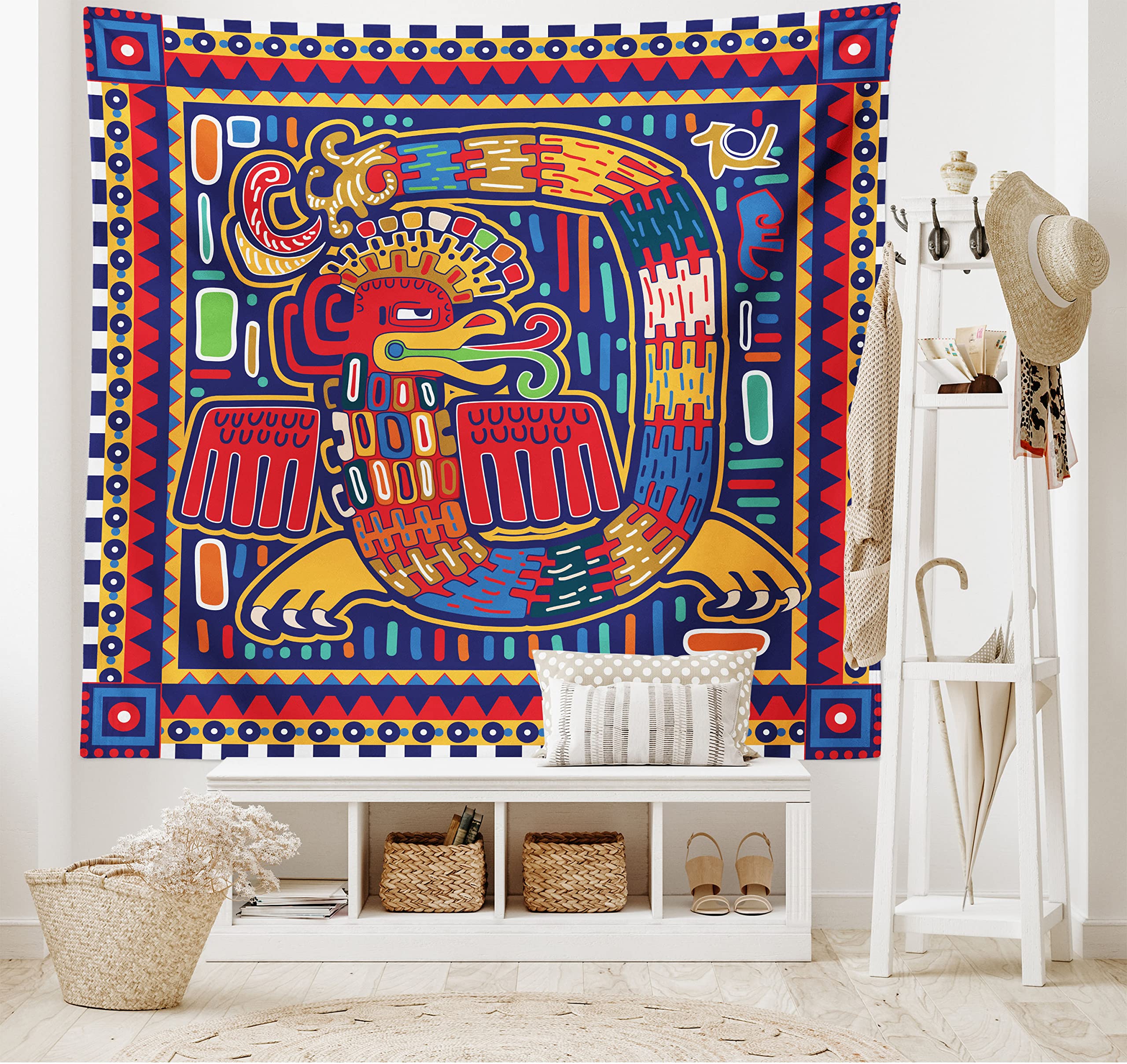 Amazon Com Ambesonne Mexican Tapestry Culture Pattern Colorful Artwork Abstract Snake In Vivid Folk Style Wide Wall Hanging For Bedroom Living Room Dorm 80 X 60 Mustard Orange Home Kitchen